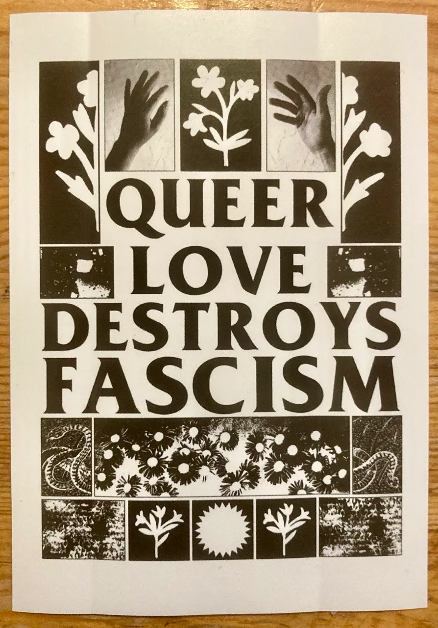 Queer love destroys fascism -tarranippu. Nipussa 15 kpl. A7.